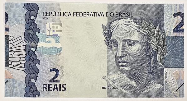 • Numismática, Brasil. Cédula de 2 Reias. Erro de Corte FE