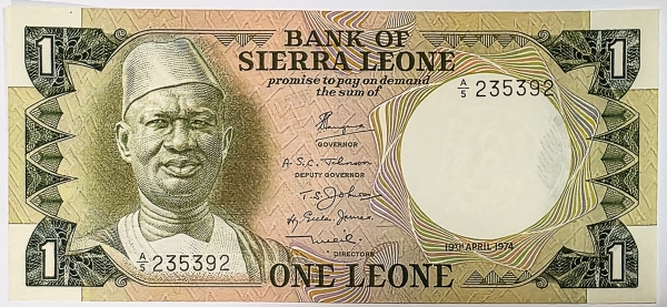 • Numismática, Sierra Leone. Cédula  de 1 Leone 1974 P-5a FE