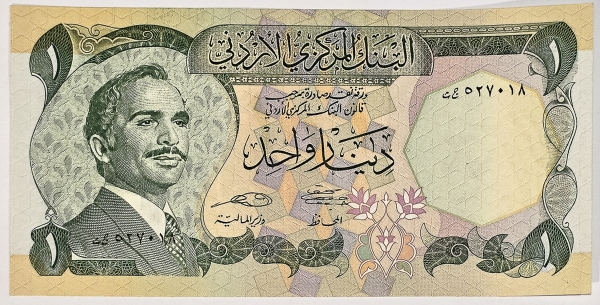 • Numismática, Jordan. Cédula de 1 Dinar P-18e FE