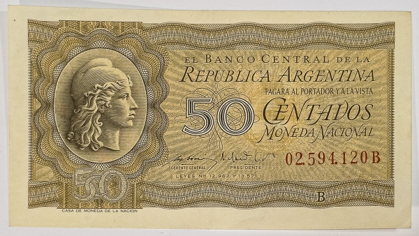 • Numismática, Argentina Cédula de 50 Centavos SOB