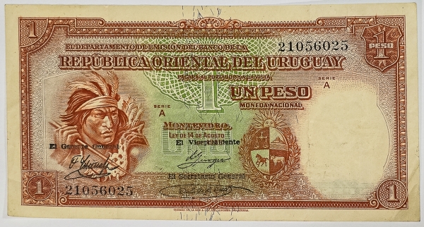 • Numismática, Uruguay. Cédula 1 Peso MBC+