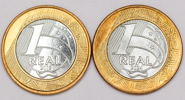 • Numismática, Brasil. Moeda de 1 Real. 30 e 50 anos do Banco Central do Brasil. Comemorativas.