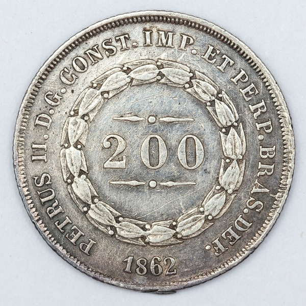 • Numismática, Brasil. Moeda de 200 RÉIS 1862