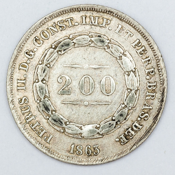 • Numismática, Brasil. Moeda de 200 RÉIS 1863