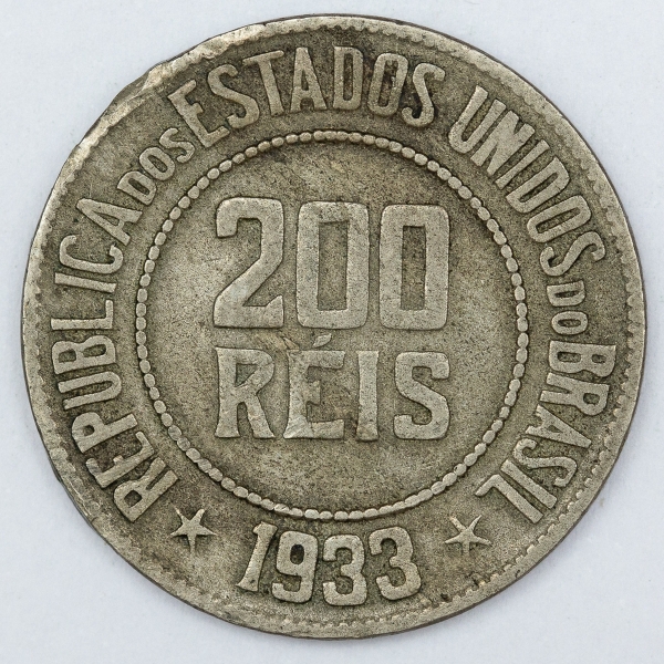• Numismática, Brasil. Moeda de 200 RÉIS 1933