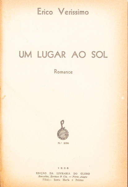 • Livro: VERÍSSIMO, Érico. `um Lugar ao Sol`, 1ª edição. Porto Alegre: Livraria do Globo, 1936; 350p. Enc.