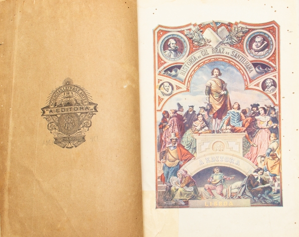 • Livro: LESAGE. `História de Gil Braz de Santilhana`, tradução portuguesa de Júlio César Machado, grande edição popular. Lisboa: A Editora, 1909; 720p. Encadernado. Muito ilustrado, em p/b e em cores. Picos de inseto e restauro nas margens de algumas fls, sem alcançar o texto.