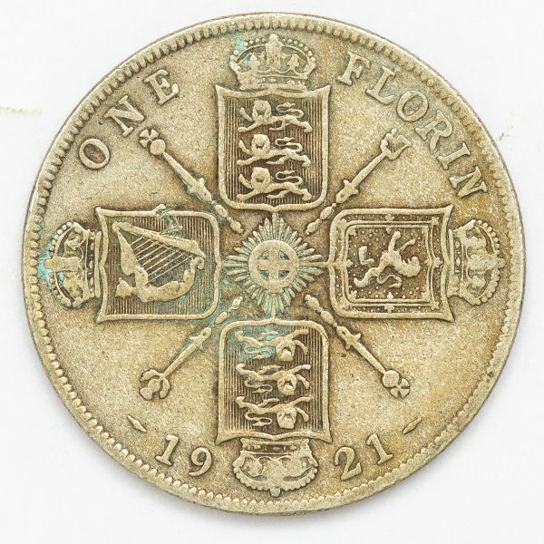 • Numismática, INGLATERRA. Uma Moeda de Prata 1 Florin 1921