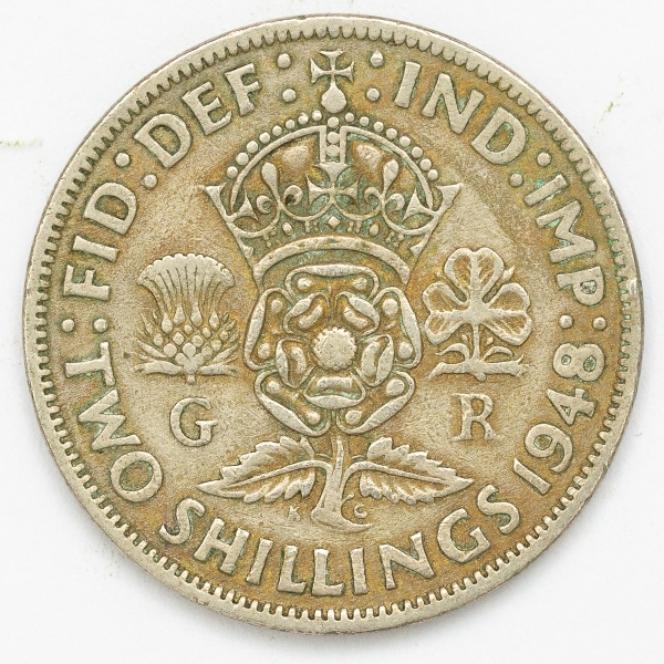 • Numismática, INGLATERRA. Uma Moeda 2 Shillings 1948