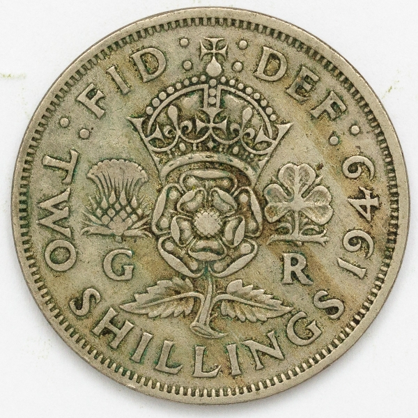 • Numismática, INGLATERRA. Uma Moeda 2 Shillings 1949