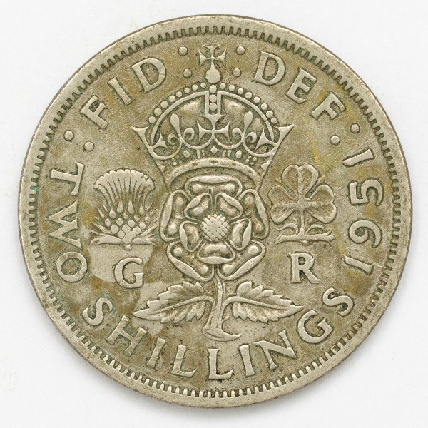 • Numismática, INGLATERRA. Uma Moeda 2 Shillings 1951
