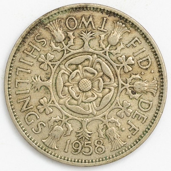 • Numismática, INGLATERRA. Uma Moeda 2 Shillings 1958