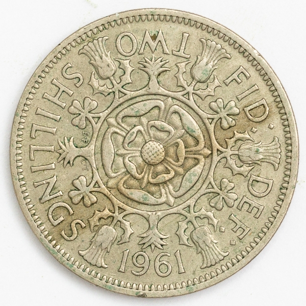 • Numismática, INGLATERRA. Uma Moeda 2 Shillings 1961