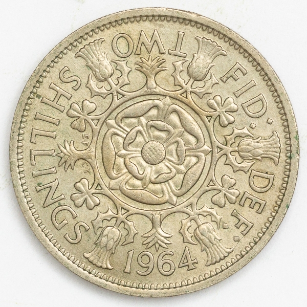• Numismática, INGLATERRA. Uma Moeda 2 Shillings 1964