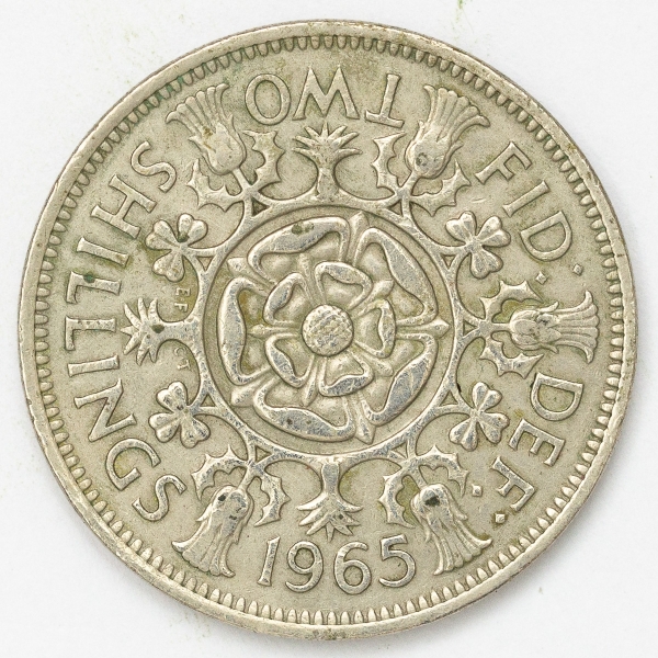 • Numismática, INGLATERRA. Uma Moeda 2 Shillings 1965