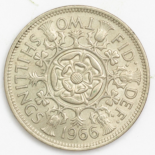 • Numismática, INGLATERRA. Uma Moeda 2 Shillings 1966
