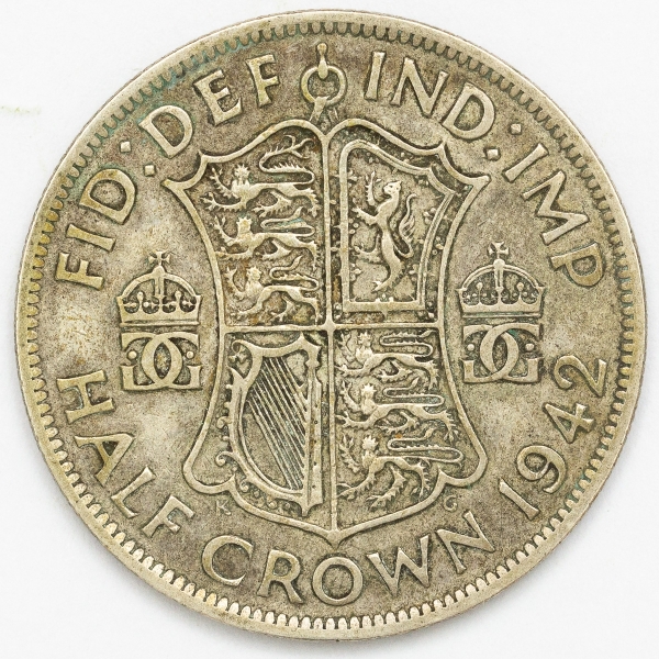 • Numismática, INGLATERRA. Uma Moeda de Prata KM#856 Half Crown 1942
