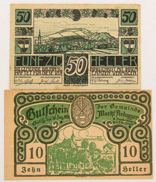 • Numismática, AUSTRIA. Duas Cédulas NOTGELD
