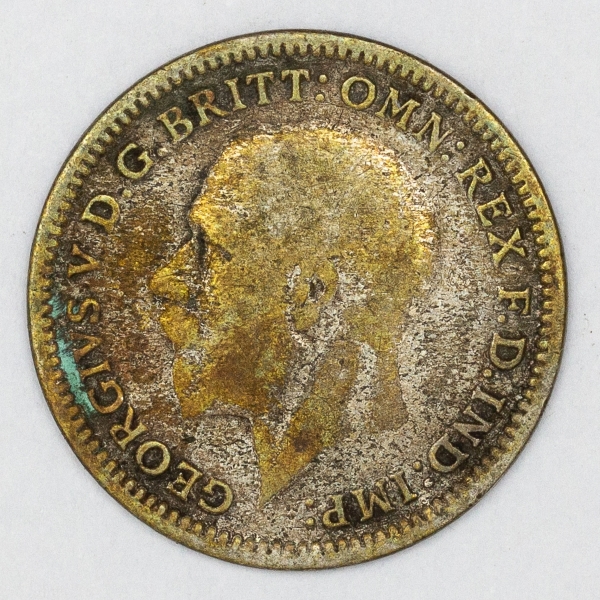 • Numismática, INGLATERRA. Uma Moeda de Prata 3 Pence 1925