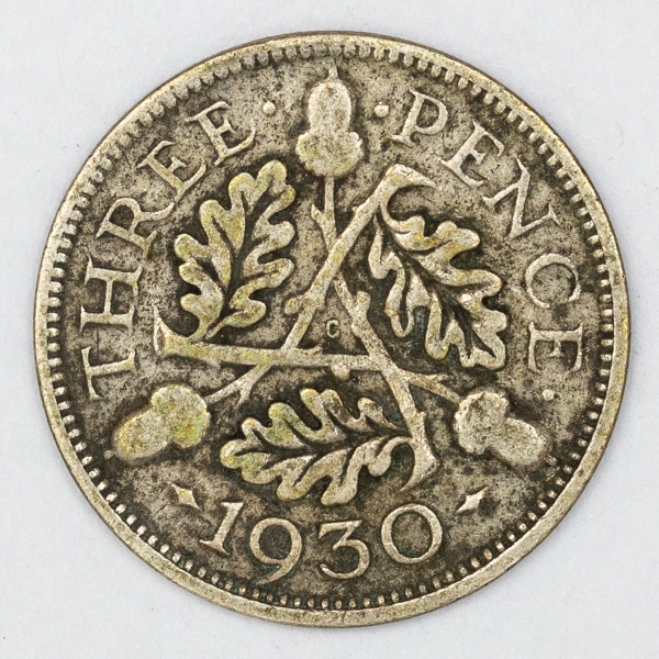 • Numismática, INGLATERRA. Uma Moeda de Prata 3 Pence 1930