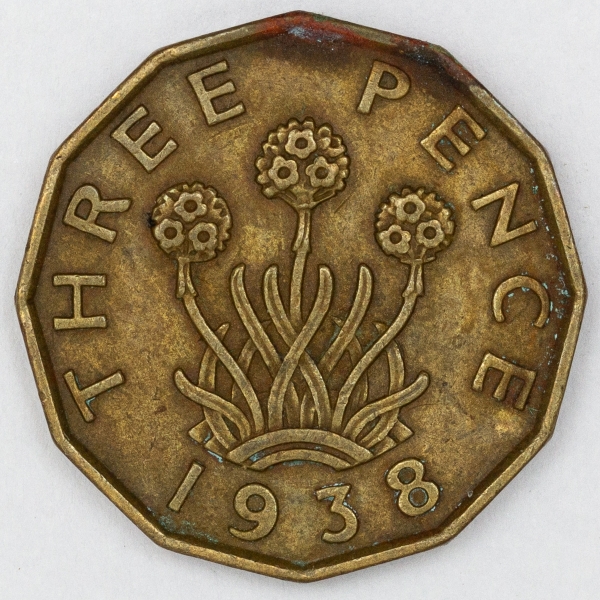 • Numismática, INGLATERRA. Uma Moeda 3 Pence 1938