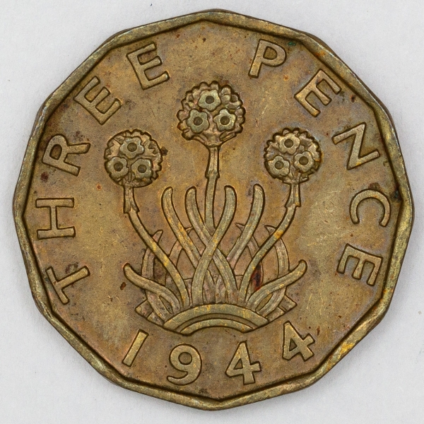 • Numismática, INGLATERRA. Uma Moeda 3 Pence 1944
