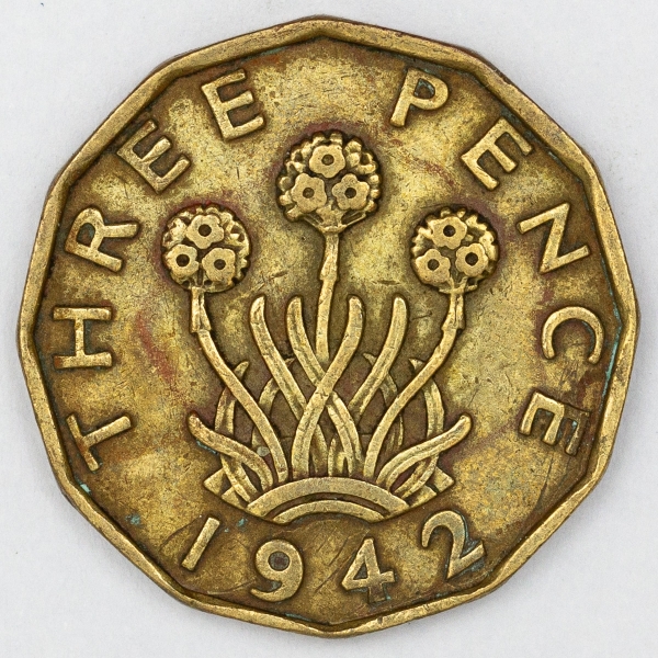 • Numismática, INGLATERRA. Uma Moeda 3 Pence 1942