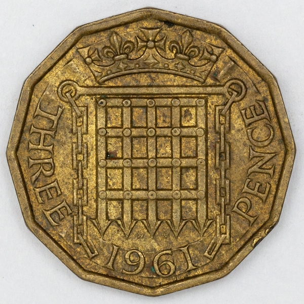 • Numismática, INGLATERRA. Uma Moeda 3 Pence 1961