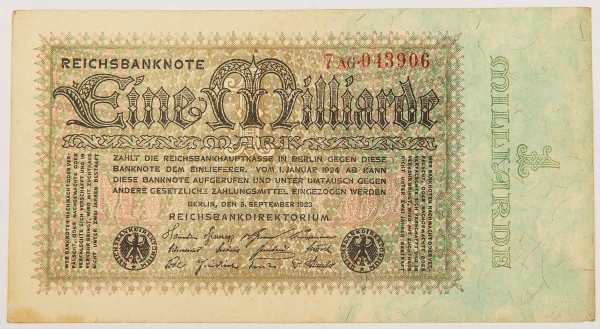 • Numismática, ALEMANHA. Uma Cédula 1000000000 Mark