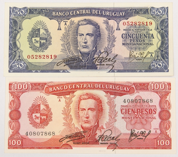 • Numismática, INTERNACIONAL. Duas Cédulas URUGUAY Flor de Estampa
