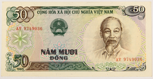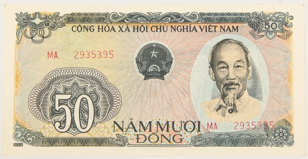 • Numismática, VIETNAM. Uma Cédula P-97 50 Dong 1983 Flor de Estampa