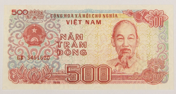 • Numismática, VIETNAM. Uma Cédula P-101 500 Dong 1988 Flor de Estampa