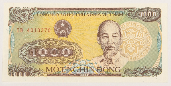 • Numismática, VIETNAM. Uma Cédula P-106 1000 Dong 1988 Flor de Estampa
