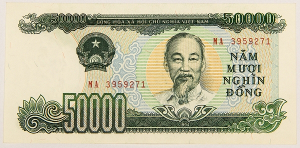 • Numismática, VIETNAM. Uma Cédula P-111 50000 Dong 1991 Flor de Estampa