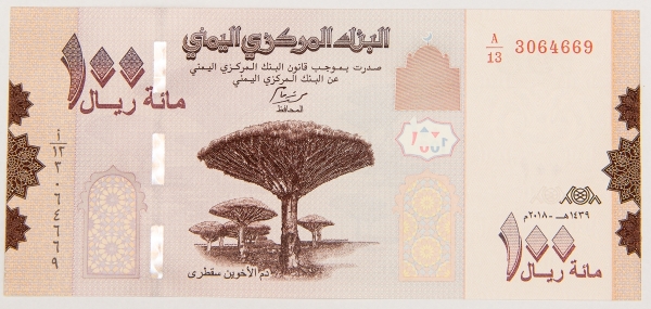 • Numismática, YEMEN. Uma Cédula 100 Rials Flor de Estampa
