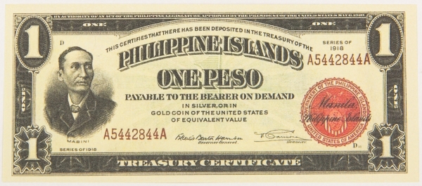 • Numismática, PHILLIPINES. Uma Réplica de Cédula Rara Impressa na Europa em Papel de Alta Qualidade 1 Peso