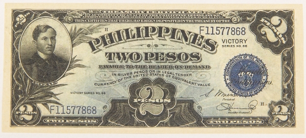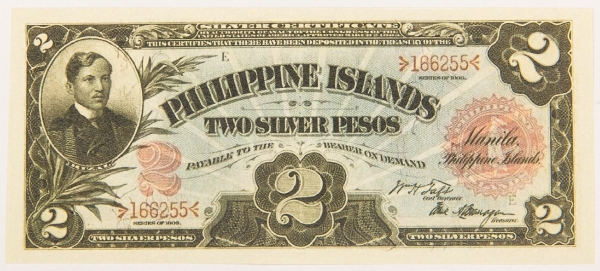 • Numismática, PHILLIPINES. Uma Réplica de Cédula Rara Impressa na Europa em Papel de Alta Qualidade 2 Pesos