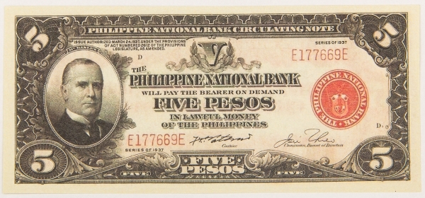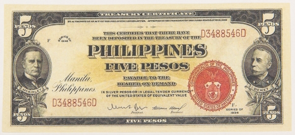 • Numismática, PHILLIPINES. Uma Réplica de Cédula Rara Impressa na Europa em Papel de Alta Qualidade 5 Pesos