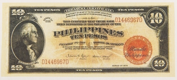 • Numismática, PHILLIPINES. Uma Réplica de Cédula Rara Impressa na Europa em Papel de Alta Qualidade 10 Pesos