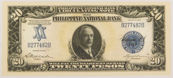 • Numismática, PHILLIPINES. Uma Réplica de Cédula Rara Impressa na Europa em Papel de Alta Qualidade 20 Pesos
