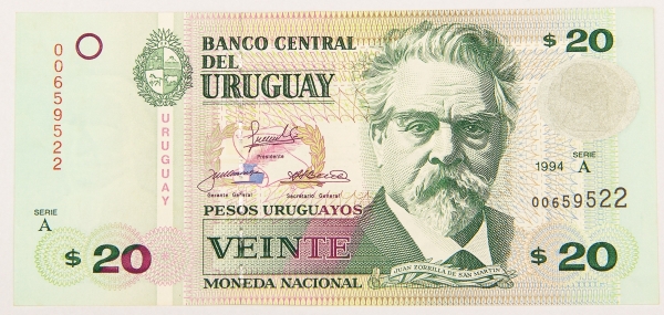 • Numismática, URUGUAY. Uma Cédula 20 Pesos 1994