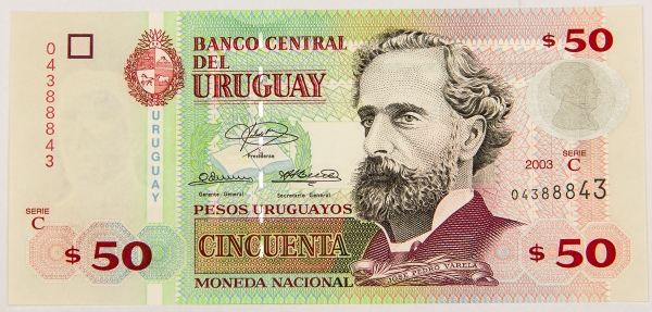 • Numismática, URUGUAY. Uma Cédula 50 Pesos 2003 Flor de Estampa