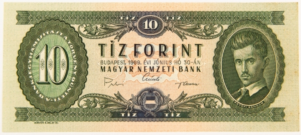 • Numismática, HUNGRIA. Uma Cédula 10 Forint 1969 Flor de Estampa