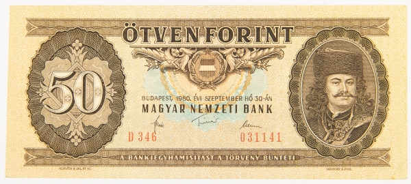 • Numismática, HUNGRIA. Uma Cédula 50 Forint 1980
