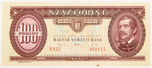 • Numismática, HUNGRIA. Uma Cédula 100 Forint 1992
