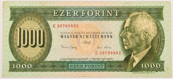 • Numismática, HUNGRIA. Uma Cédula 1000 Forint 1993