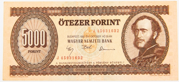 • Numismática, HUNGRIA. Uma Cédula 5000 Forint 1992