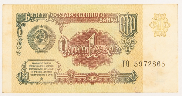 • Numismática, RUSSIA. Uma Cédula 1 Ruble 1991