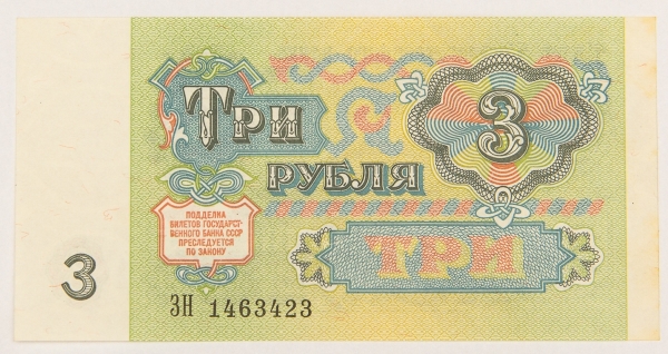 • Numismática, RUSSIA. Uma Cédula 3 Rubles 1991 Flor de Estampa