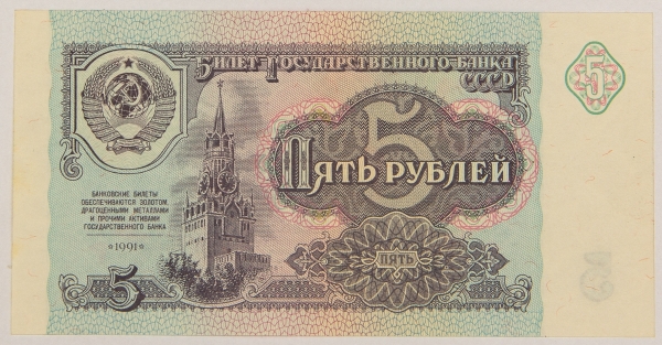 • Numismática, RUSSIA. Uma Cédula 5 Rubles 1991 Flor de Estampa